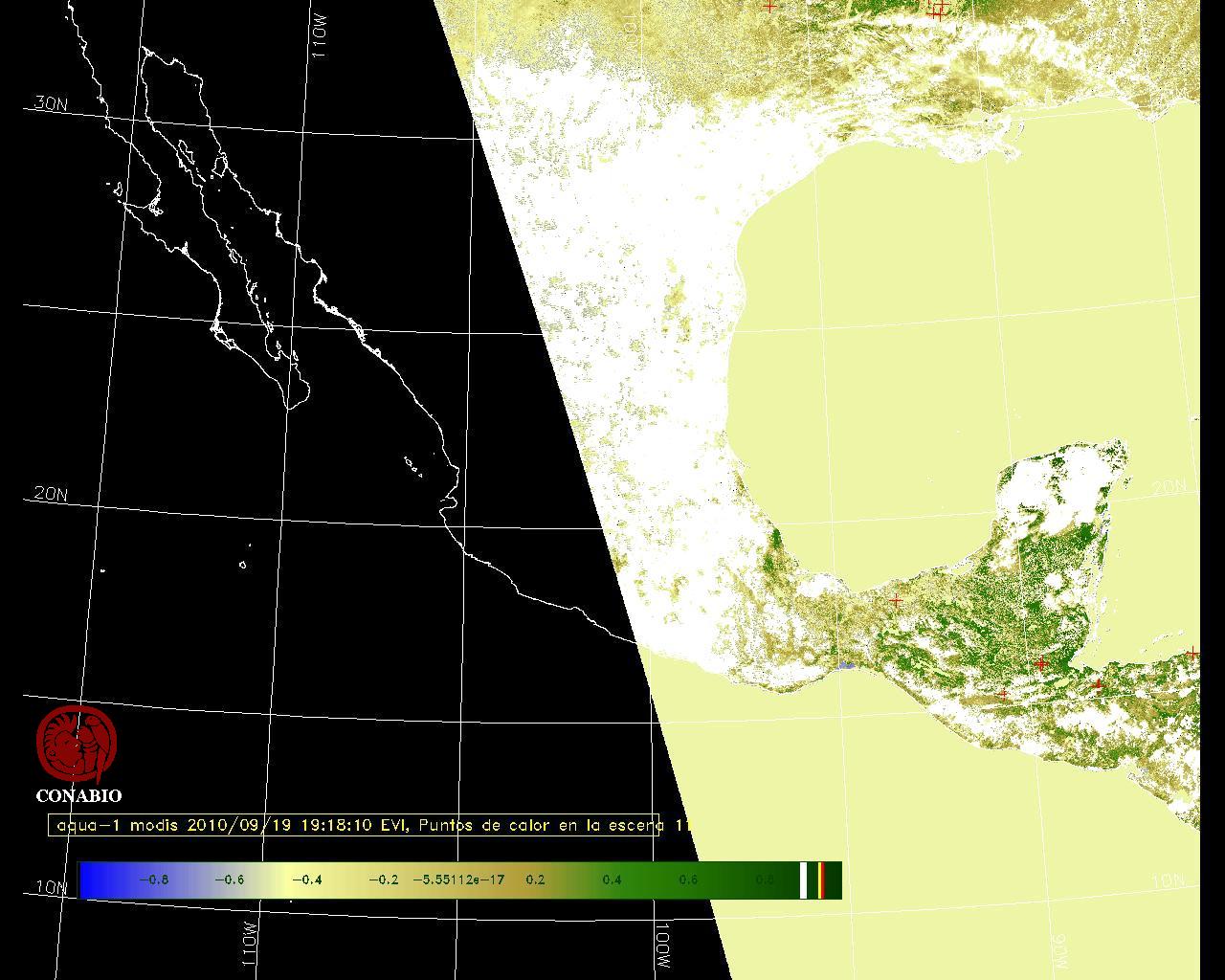Se considera como punto de calor al elemento espacial mínimo de la imagen (pixel) que reporta una temperatura elevada. Para las imágenes diurnas la temperatura mínima considera es de 42 C y para las imágenes nocturnas es de 25 C. |