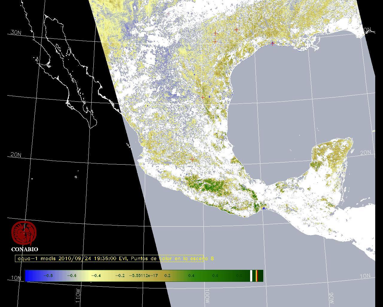 Se considera como punto de calor al elemento espacial mínimo de la imagen (pixel) que reporta una temperatura elevada. Para las imágenes diurnas la temperatura mínima considera es de 42 C y para las imágenes nocturnas es de 25 C. |