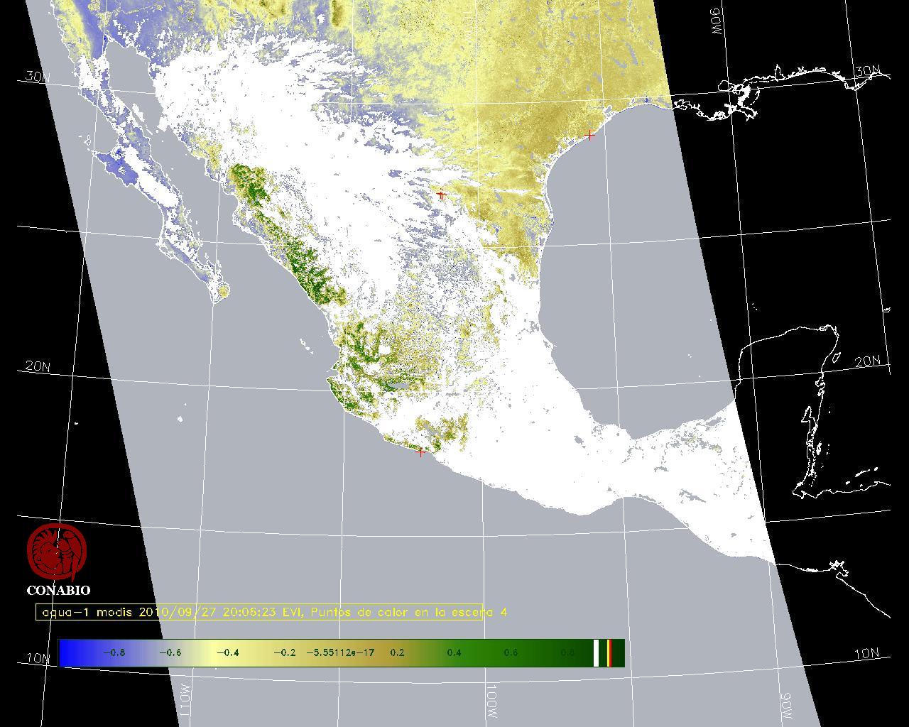 Se considera como punto de calor al elemento espacial mínimo de la imagen (pixel) que reporta una temperatura elevada. Para las imágenes diurnas la temperatura mínima considera es de 42 C y para las imágenes nocturnas es de 25 C. |