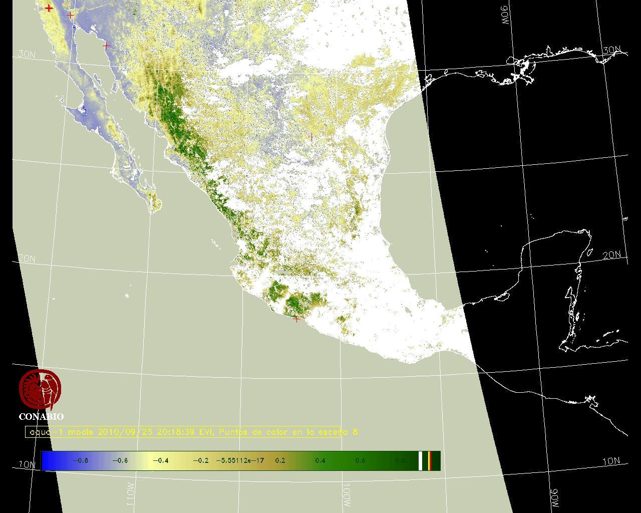 Se considera como punto de calor al elemento espacial mínimo de la imagen (pixel) que reporta una temperatura elevada. Para las imágenes diurnas la temperatura mínima considera es de 42 C y para las imágenes nocturnas es de 25 C. |