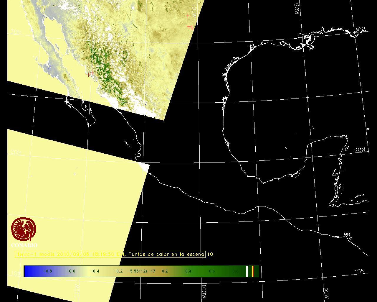Se considera como punto de calor al elemento espacial mínimo de la imagen (pixel) que reporta una temperatura elevada. Para las imágenes diurnas la temperatura mínima considera es de 42 C y para las imágenes nocturnas es de 25 C. |