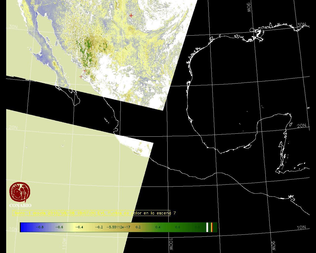 Se considera como punto de calor al elemento espacial mínimo de la imagen (pixel) que reporta una temperatura elevada. Para las imágenes diurnas la temperatura mínima considera es de 42 C y para las imágenes nocturnas es de 25 C. |