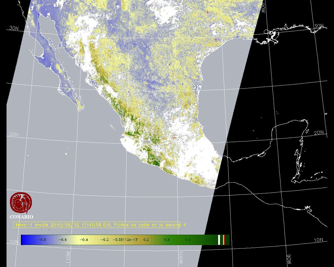 Se considera como punto de calor al elemento espacial mínimo de la imagen (pixel) que reporta una temperatura elevada. Para las imágenes diurnas la temperatura mínima considera es de 42 C y para las imágenes nocturnas es de 25 C. |