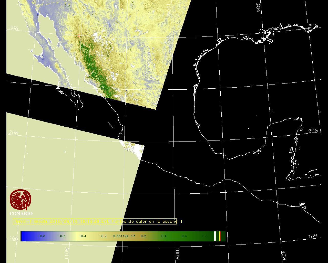Nubosidad en el terreno:2% Nubosidad sobre México:3% Datos nulos en la escena:54% Datos nulos sobre México:45% |