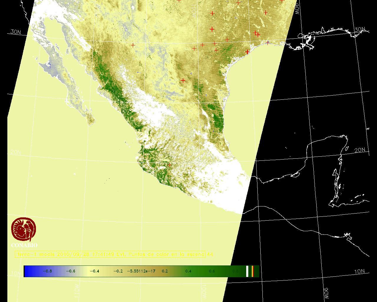 Se considera como punto de calor al elemento espacial mínimo de la imagen (pixel) que reporta una temperatura elevada. Para las imágenes diurnas la temperatura mínima considera es de 42 C y para las imágenes nocturnas es de 25 C. |