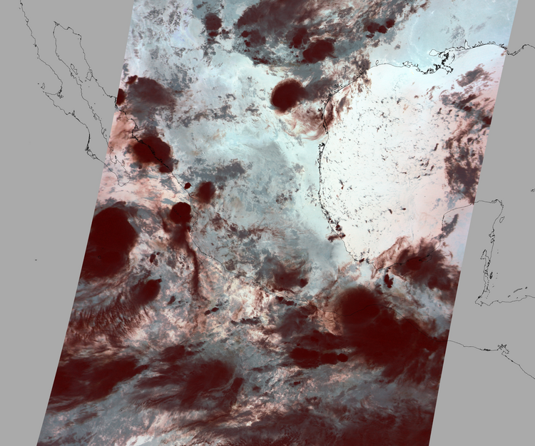 Nubosidad en el terreno:30% Nubosidad sobre México:26% Datos nulos en la escena:28% Datos nulos sobre México:15% |
