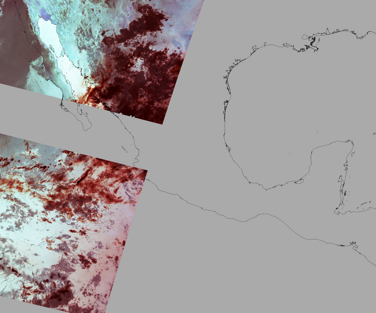Nubosidad sobre el terreno:18% Nubosidad sobre México:22% Datos nulos en la escena:59% Datos nulos sobre México:54% |