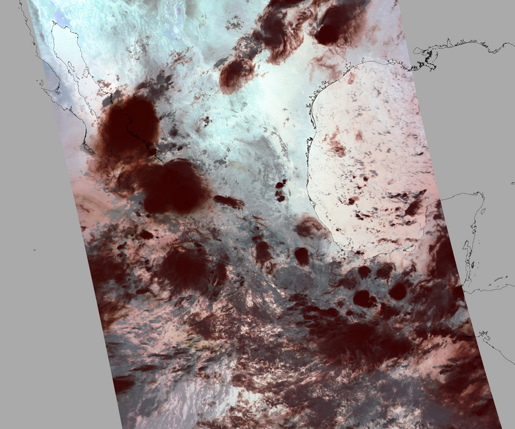 Nubosidad en el terreno:25% Nubosidad sobre México:24% Datos nulos en la escena:28% Datos nulos sobre México:4% |