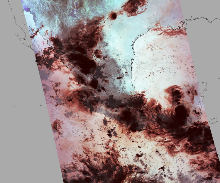 Nubosidad en el terreno:29% Nubosidad sobre México:37% Datos nulos en la escena:28% Datos nulos sobre México:5% |