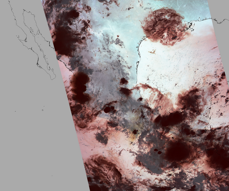 Nubosidad en el terreno:28% Nubosidad sobre México:32% Datos nulos en la escena:31% Datos nulos sobre México:11% |