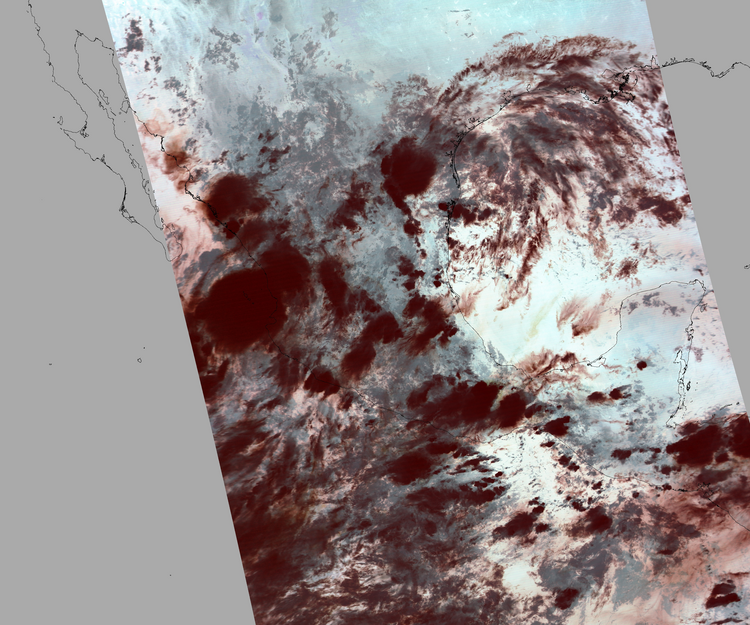 Nubosidad en el terreno:32% Nubosidad sobre México:40% Datos nulos en la escena:29% Datos nulos sobre México:8% |