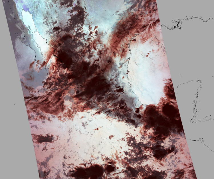Nubosidad en el terreno:31% Nubosidad sobre México:37% Datos nulos en la escena:28% Datos nulos sobre México:6% |