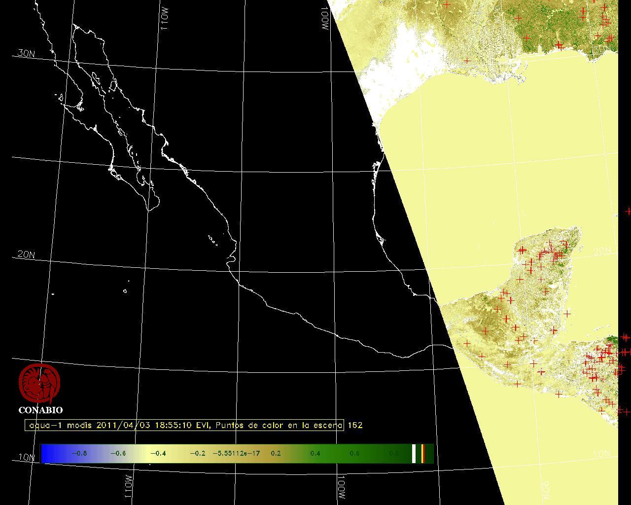 Se considera como punto de calor al elemento espacial mínimo de la imagen (pixel) que reporta una temperatura elevada. Para las imágenes diurnas la temperatura mínima considera es de 42 C y para las imágenes nocturnas es de 25 C. |