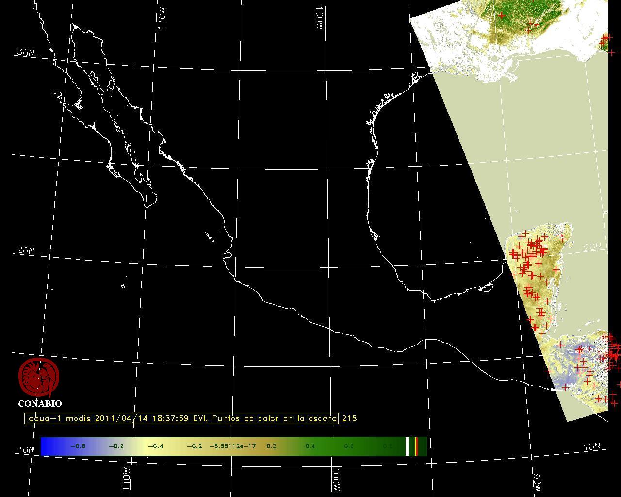 Se considera como punto de calor al elemento espacial mínimo de la imagen (pixel) que reporta una temperatura elevada. Para las imágenes diurnas la temperatura mínima considera es de 42 C y para las imágenes nocturnas es de 25 C. |