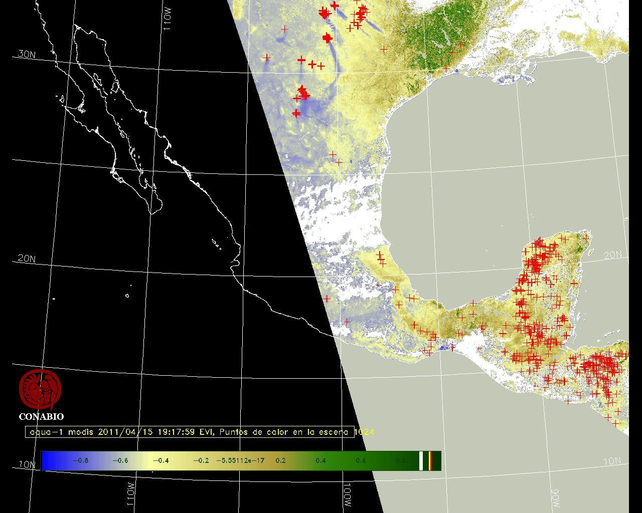 Se considera como punto de calor al elemento espacial mínimo de la imagen (pixel) que reporta una temperatura elevada. Para las imágenes diurnas la temperatura mínima considera es de 42 C y para las imágenes nocturnas es de 25 C. |