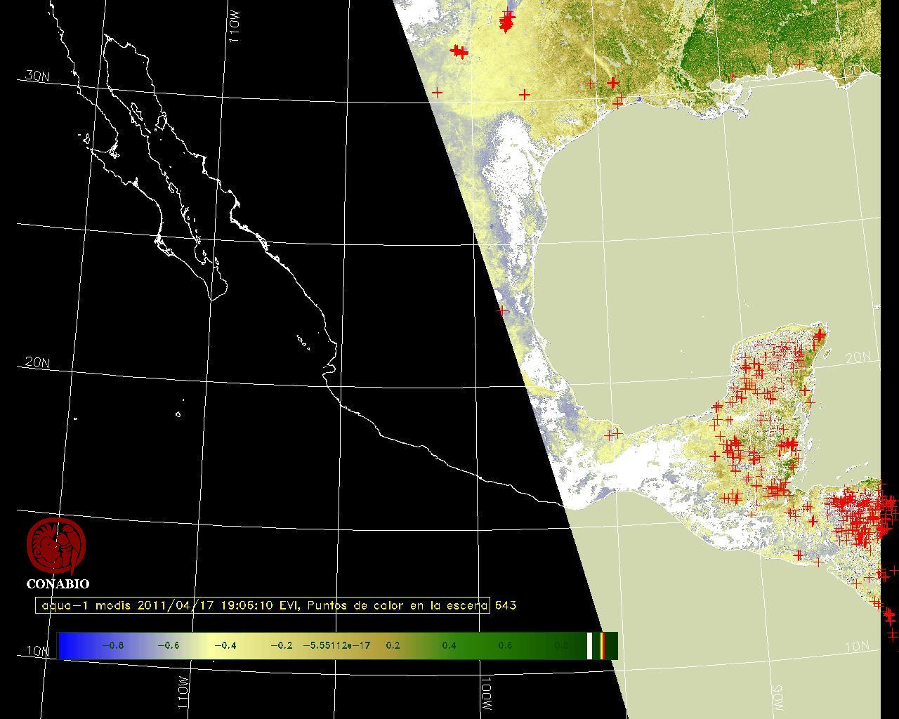 Se considera como punto de calor al elemento espacial mínimo de la imagen (pixel) que reporta una temperatura elevada. Para las imágenes diurnas la temperatura mínima considera es de 42 C y para las imágenes nocturnas es de 25 C. |