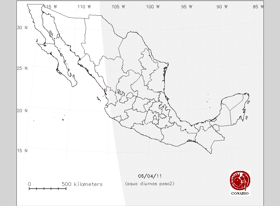 Se considera como punto de calor al elemento espacial mínimo de la imagen (pixel) que reporta una temperatura elevada. Para las imágenes diurnas la temperatura mínima considera es de 42 C y para las imágenes nocturnas es de 25 C. |