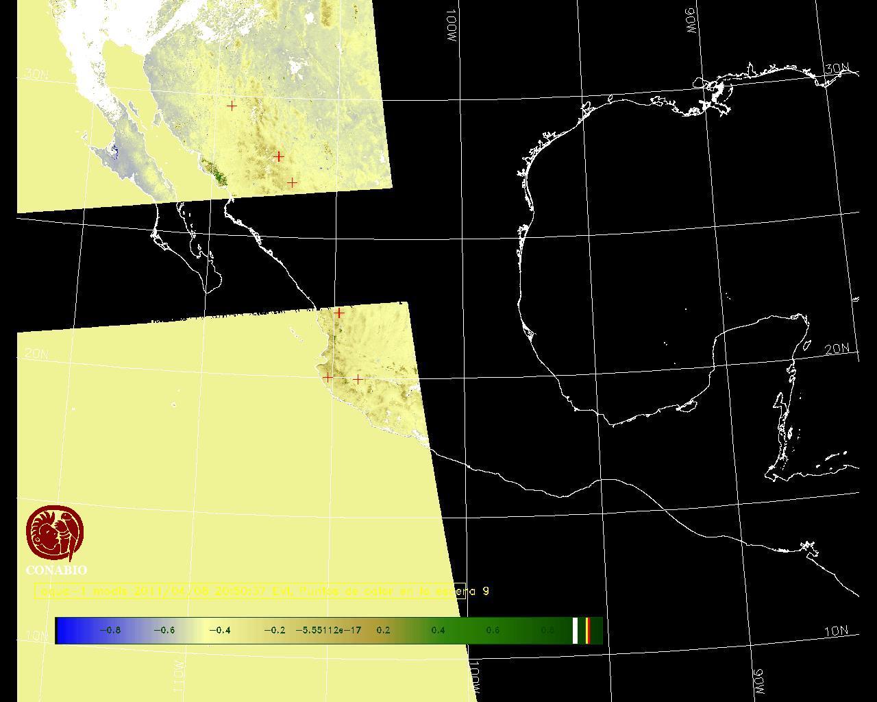 Se considera como punto de calor al elemento espacial mínimo de la imagen (pixel) que reporta una temperatura elevada. Para las imágenes diurnas la temperatura mínima considera es de 42 C y para las imágenes nocturnas es de 25 C. |