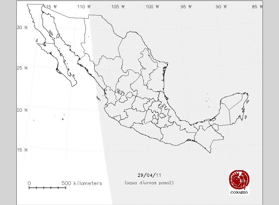 Se considera como punto de calor al elemento espacial mínimo de la imagen (pixel) que reporta una temperatura elevada. Para las imágenes diurnas la temperatura mínima considera es de 42 C y para las imágenes nocturnas es de 25 C. |
