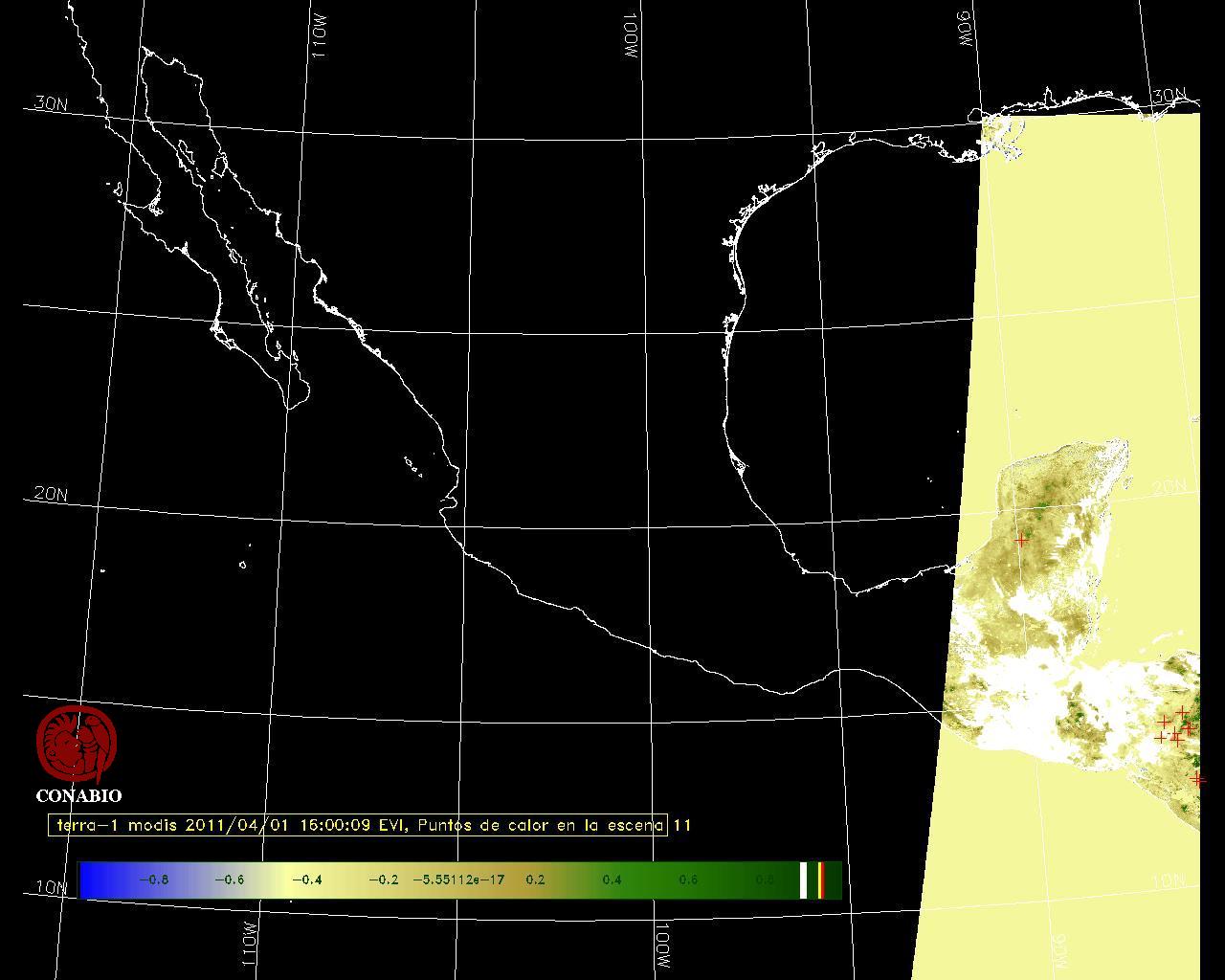 Se considera como punto de calor al elemento espacial mínimo de la imagen (pixel) que reporta una temperatura elevada. Para las imágenes diurnas la temperatura mínima considera es de 42 C y para las imágenes nocturnas es de 25 C. |