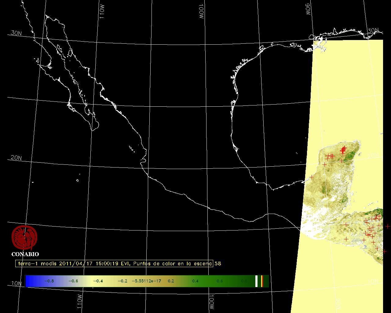 Se considera como punto de calor al elemento espacial mínimo de la imagen (pixel) que reporta una temperatura elevada. Para las imágenes diurnas la temperatura mínima considera es de 42 C y para las imágenes nocturnas es de 25 C. |