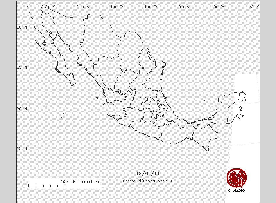 Se considera como punto de calor al elemento espacial mínimo de la imagen (pixel) que reporta una temperatura elevada. Para las imágenes diurnas la temperatura mínima considera es de 42 C y para las imágenes nocturnas es de 25 C. |