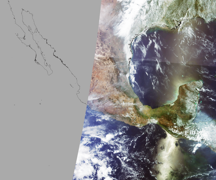 Nubosidad en el terreno:15% Nubosidad sobre México:4% Datos nulos en la escena:41% Datos nulos sobre México:44% |