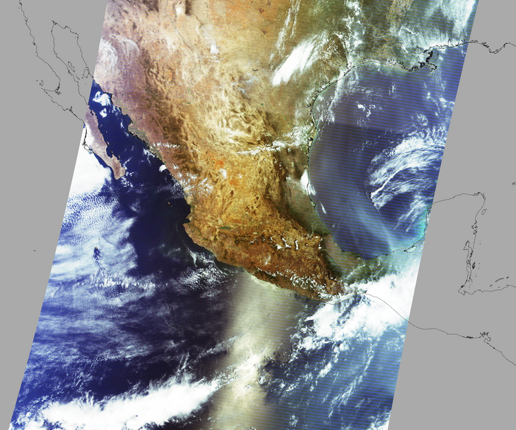 Nubosidad en el terreno:6% Nubosidad sobre México:6% Datos nulos en la escena:28% Datos nulos sobre México:14% |