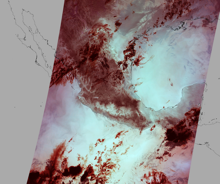 Nubosidad en el terreno:7% Nubosidad sobre México:6% Datos nulos en la escena:28% Datos nulos sobre México:16% |