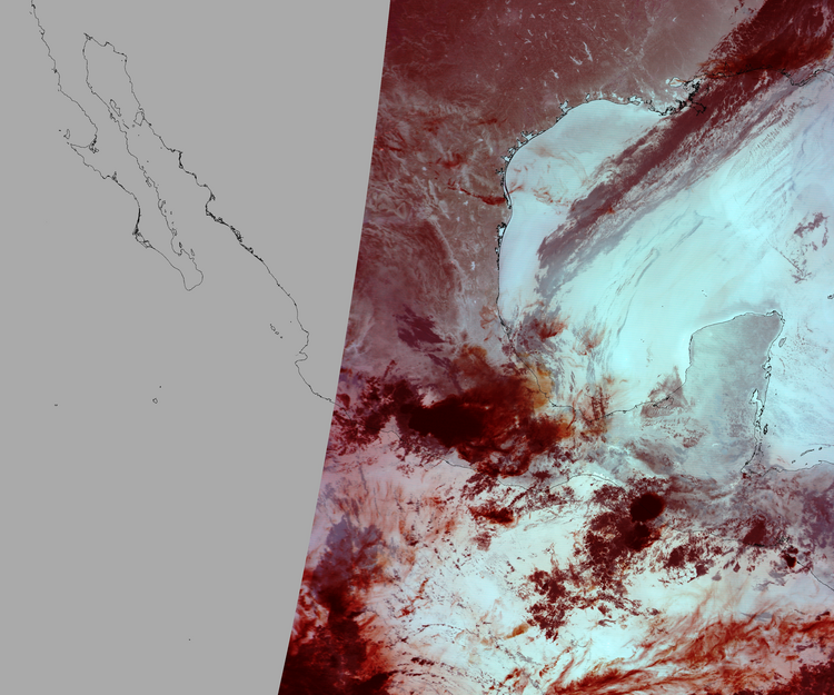 Nubosidad en el terreno:6% Nubosidad sobre México:10% Datos nulos en la escena:40% Datos nulos sobre México:43% |