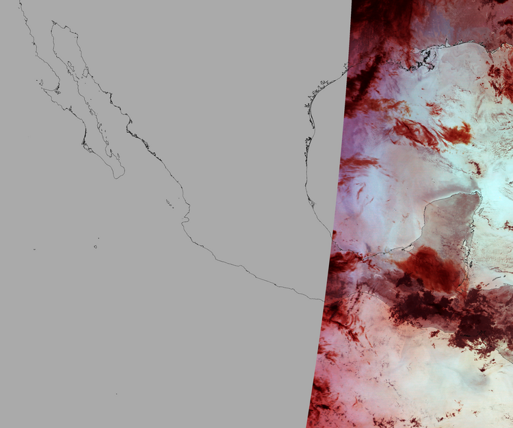 Nubosidad en el terreno:11% Nubosidad sobre México:4% Datos nulos en la escena:64% Datos nulos sobre México:83% |