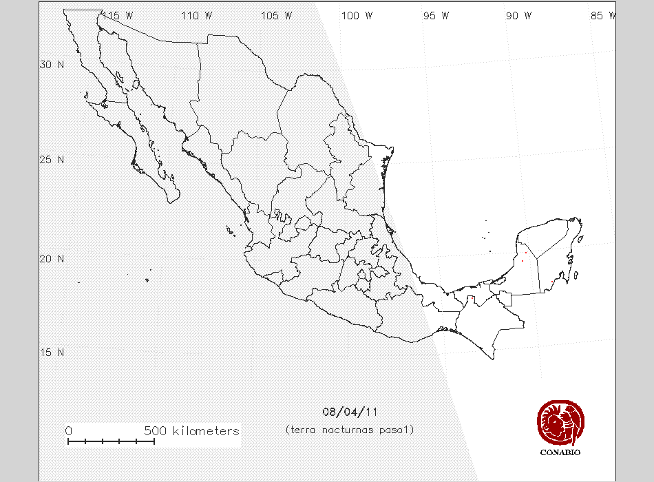Se considera como punto de calor al elemento espacial mínimo de la imagen (pixel) que reporta una temperatura elevada. Para las imágenes diurnas la temperatura mínima considera es de 42 C y para las imágenes nocturnas es de 25 C. |