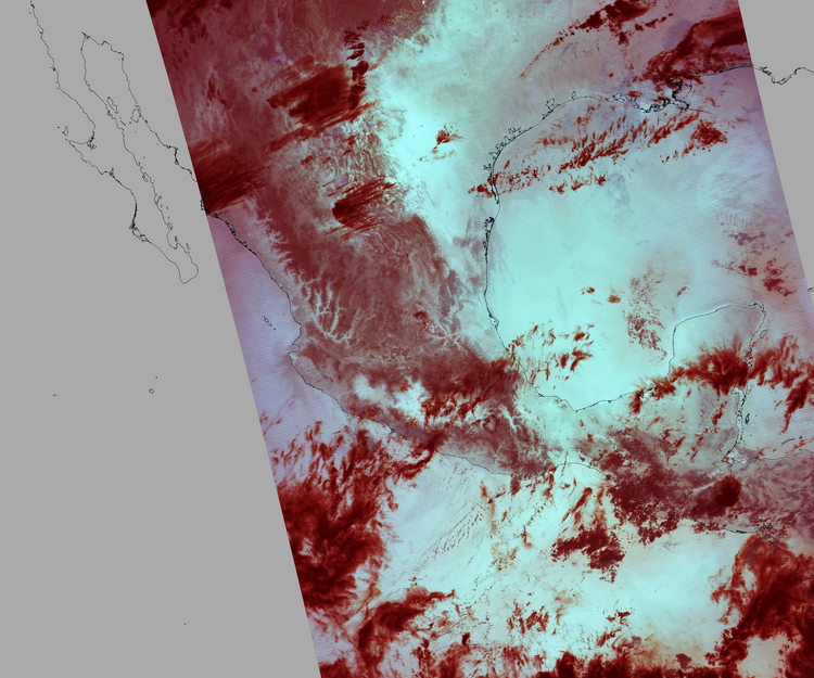 Nubosidad en el terreno:5% Nubosidad sobre México:4% Datos nulos en la escena:31% Datos nulos sobre México:12% |