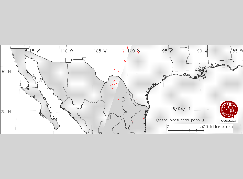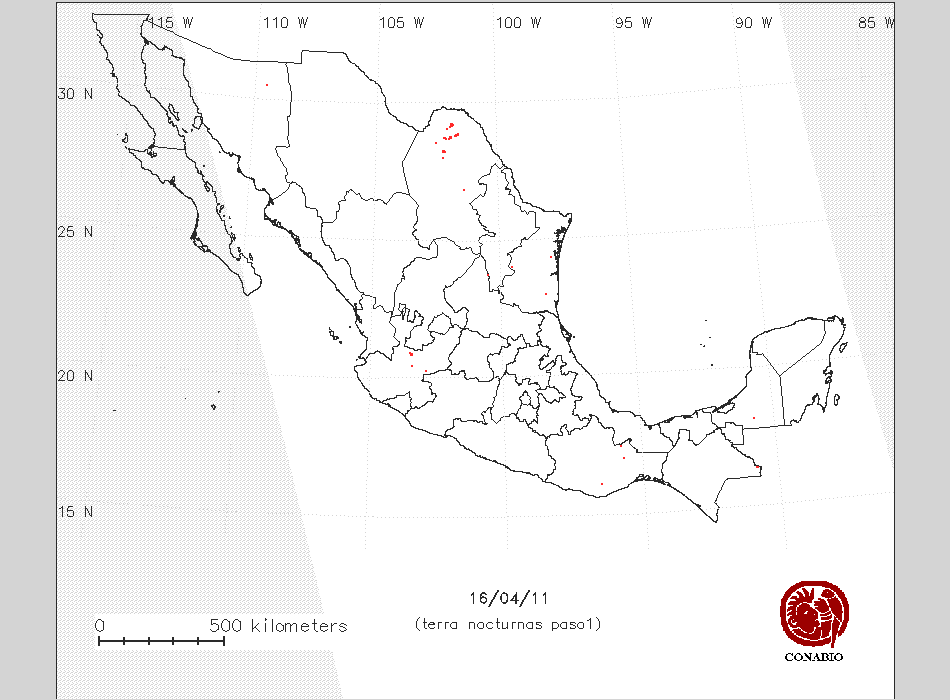 Se considera como punto de calor al elemento espacial mínimo de la imagen (pixel) que reporta una temperatura elevada. Para las imágenes diurnas la temperatura mínima considera es de 42 C y para las imágenes nocturnas es de 25 C. |