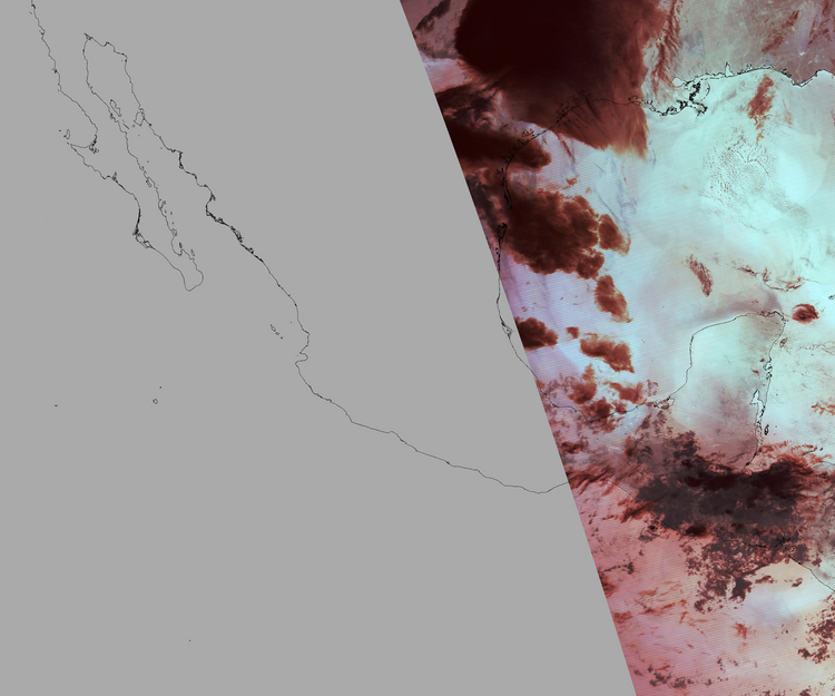 Nubosidad en el terreno:36% Nubosidad sobre México:6% Datos nulos en la escena:62% Datos nulos sobre México:84% |