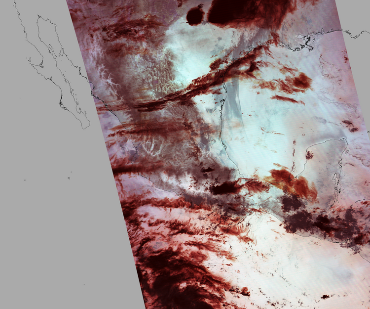 Nubosidad en el terreno:11% Nubosidad sobre México:6% Datos nulos en la escena:31% Datos nulos sobre México:11% |