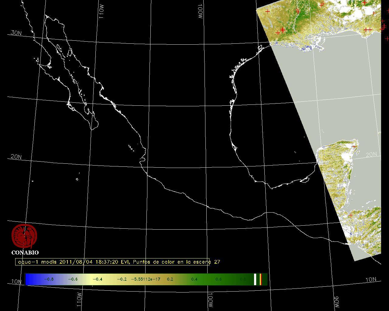Se considera como punto de calor al elemento espacial mínimo de la imagen (pixel) que reporta una temperatura elevada. Para las imágenes diurnas la temperatura mínima considera es de 42 C y para las imágenes nocturnas es de 25 C. |