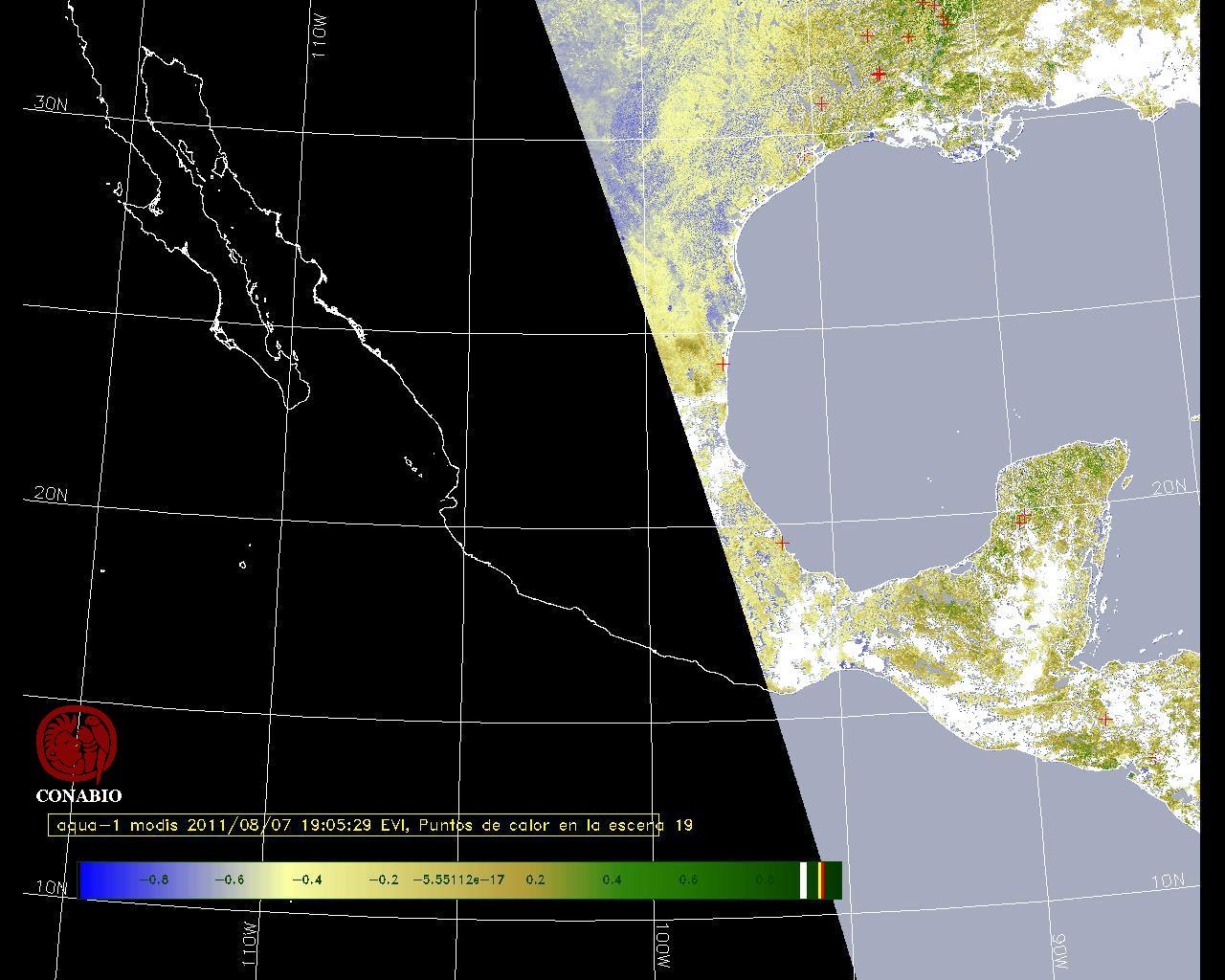 Se considera como punto de calor al elemento espacial mínimo de la imagen (pixel) que reporta una temperatura elevada. Para las imágenes diurnas la temperatura mínima considera es de 42 C y para las imágenes nocturnas es de 25 C. |