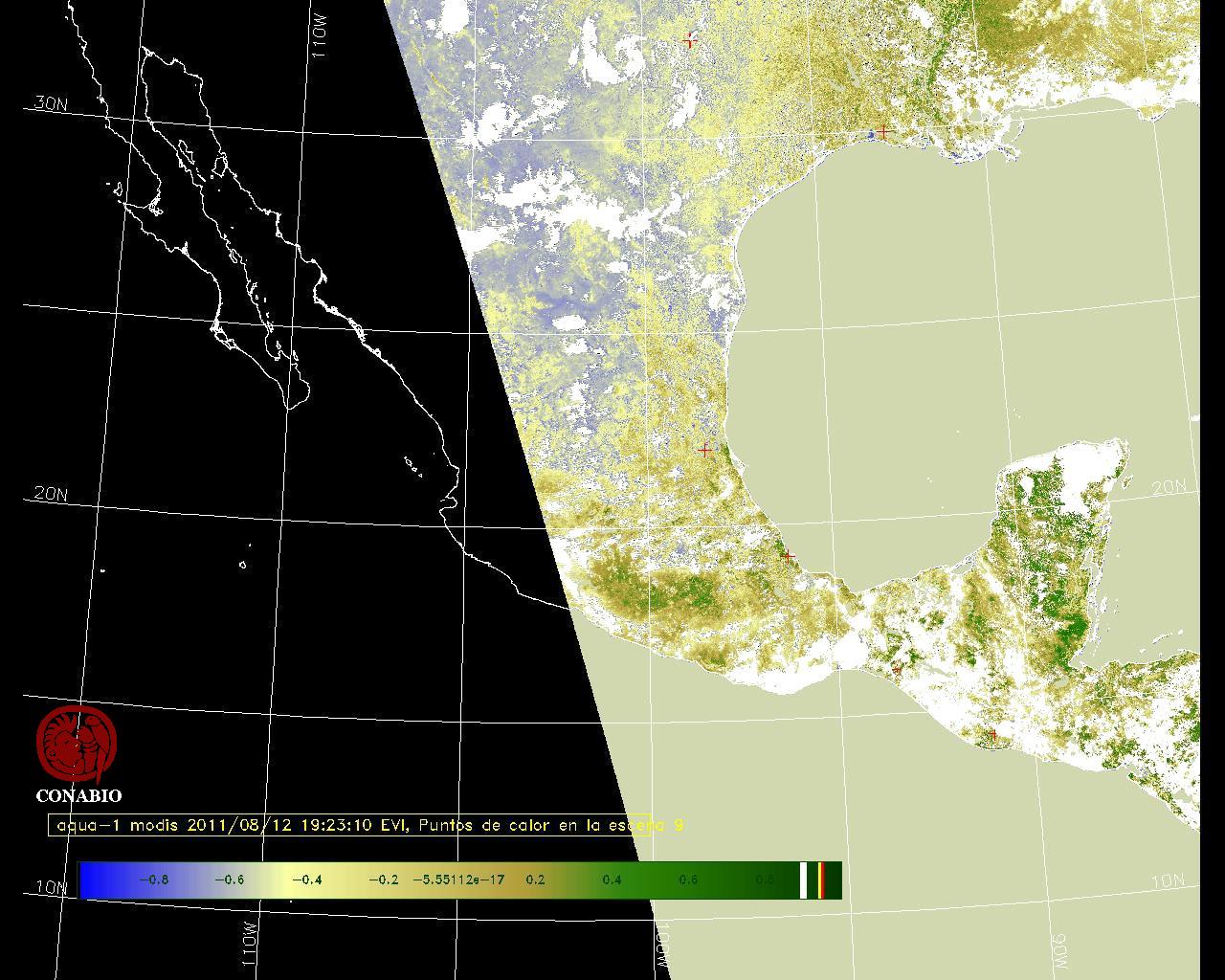 Se considera como punto de calor al elemento espacial mínimo de la imagen (pixel) que reporta una temperatura elevada. Para las imágenes diurnas la temperatura mínima considera es de 42 C y para las imágenes nocturnas es de 25 C. |