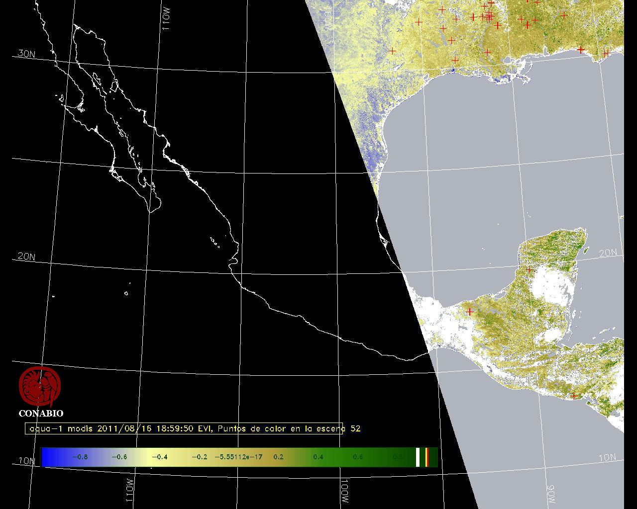 Se considera como punto de calor al elemento espacial mínimo de la imagen (pixel) que reporta una temperatura elevada. Para las imágenes diurnas la temperatura mínima considera es de 42 C y para las imágenes nocturnas es de 25 C. |