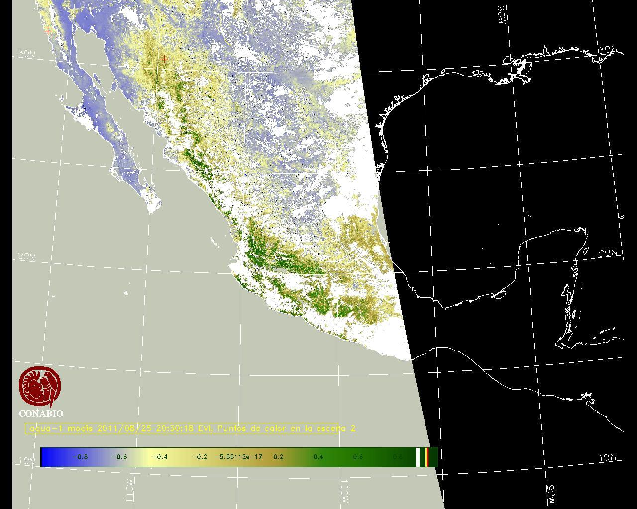 Se considera como punto de calor al elemento espacial mínimo de la imagen (pixel) que reporta una temperatura elevada. Para las imágenes diurnas la temperatura mínima considera es de 42 C y para las imágenes nocturnas es de 25 C. |