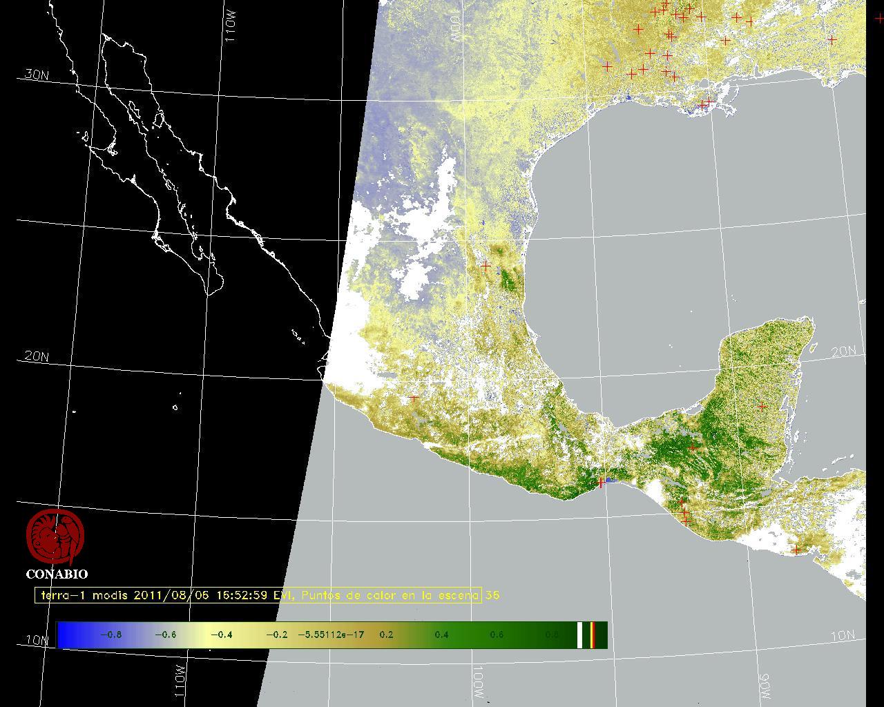 Nubosidad en el terreno:13% Nubosidad sobre México:18% Datos nulos en la escena:36% Datos nulos sobre México:35% |