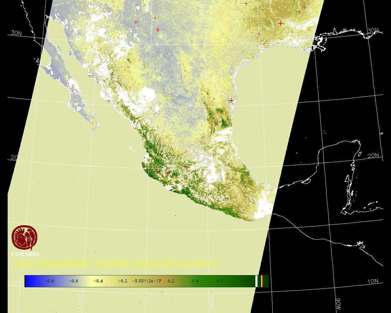 Los valores del índice van de -1 a 1, entre más cercano al valor 1 la vegetación presenta mayor vigor. Los índices de vegetación son utilizados para conocer el comportamiento de la vegetación tanto espacial como temporal. |