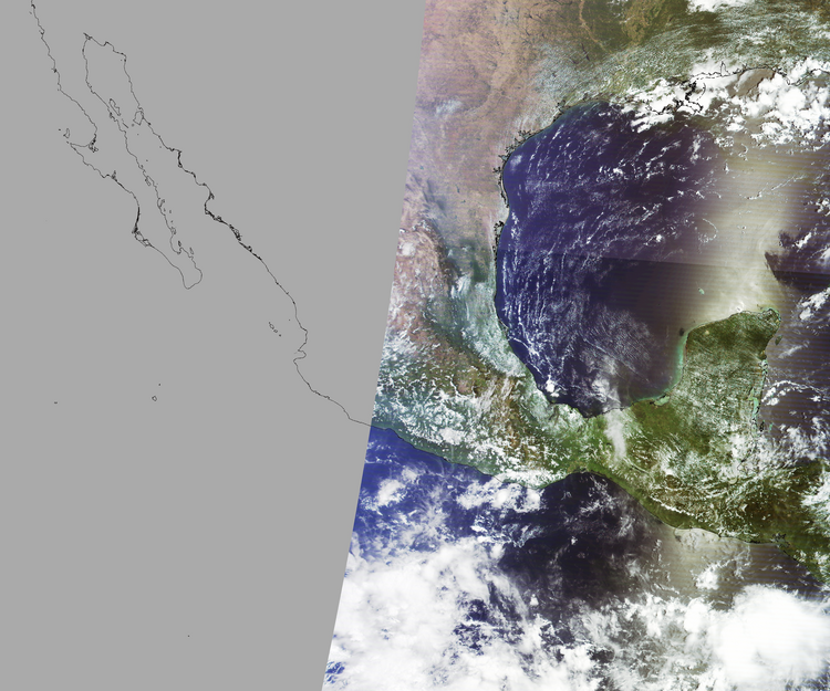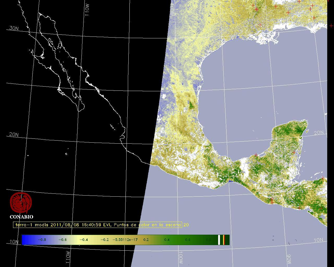 Nubosidad en el terreno:9% Nubosidad sobre México:11% Datos nulos en la escena:45% Datos nulos sobre México:54% |