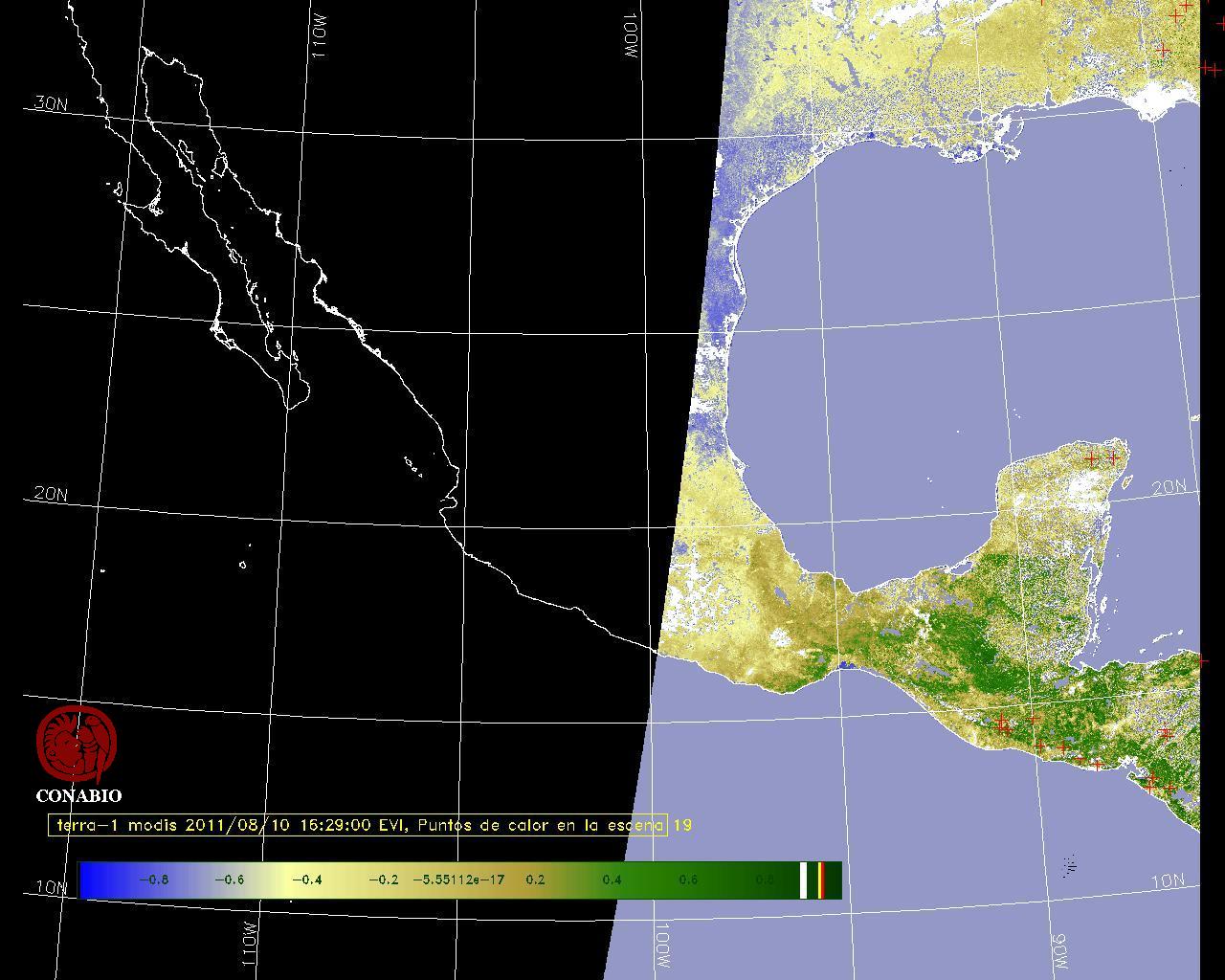Se considera como punto de calor al elemento espacial mínimo de la imagen (pixel) que reporta una temperatura elevada. Para las imágenes diurnas la temperatura mínima considera es de 42 C y para las imágenes nocturnas es de 25 C. |