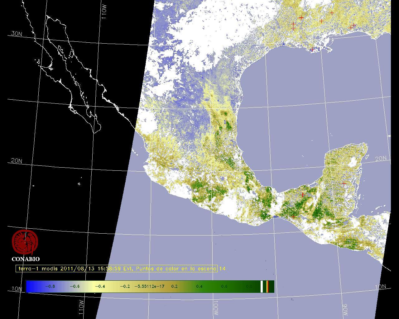 Se considera como punto de calor al elemento espacial mínimo de la imagen (pixel) que reporta una temperatura elevada. Para las imágenes diurnas la temperatura mínima considera es de 42 C y para las imágenes nocturnas es de 25 C. |