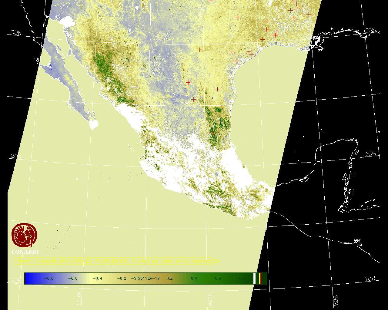 Los valores del índice van de -1 a 1, entre más cercano al valor 1 la vegetación presenta mayor vigor. Los índices de vegetación son utilizados para conocer el comportamiento de la vegetación tanto espacial como temporal. |