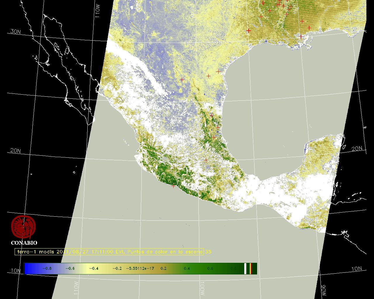 Nubosidad en el terreno:24% Nubosidad sobre México:35% Datos nulos en la escena:28% Datos nulos sobre México:16% |