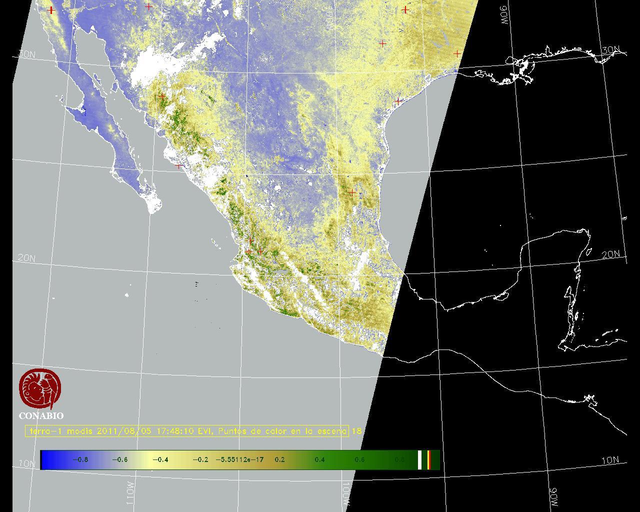 Se considera como punto de calor al elemento espacial mínimo de la imagen (pixel) que reporta una temperatura elevada. Para las imágenes diurnas la temperatura mínima considera es de 42 C y para las imágenes nocturnas es de 25 C. |