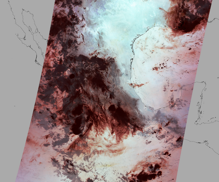 Nubosidad en el terreno:24% Nubosidad sobre México:30% Datos nulos en la escena:28% Datos nulos sobre México:15% |